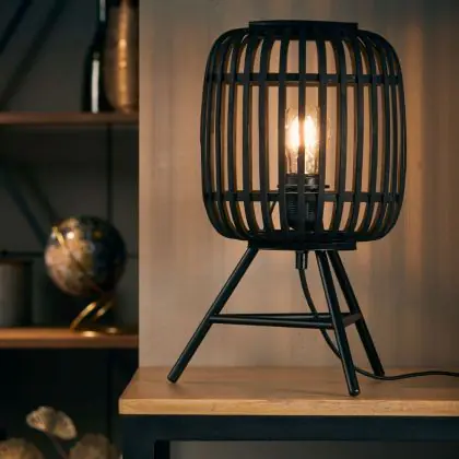 Brilliant Woodrow Table Lamp Metal Bamboo Black Wood | Suitable for 1x E27