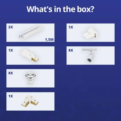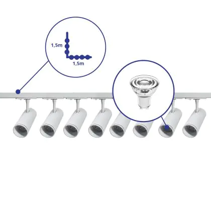 Complete Set 1-Phase Rail L 1,5 x 1,5 Meter White | incl. 8x Spot + GU10 2700K 3W Dimmable + End Cap, Power Connector and L -Connector