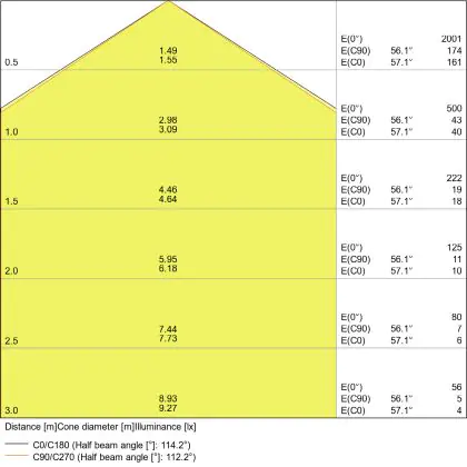 Beam angle of 110°