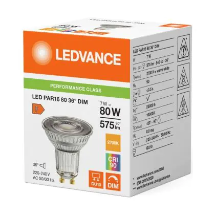 Ledvance LED PAR16 GU10 Reflector 7W 575lm 36D - 927 Extra Warm White | Best Colour Rendering - Dimmable - Replaces 80W
