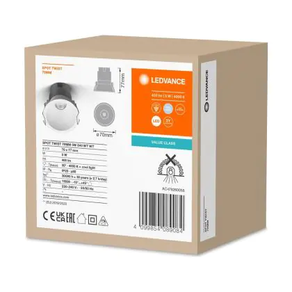 Ledvance LED Spot Twist Pro Aluminium White Reflector 5W 400lm 30D - 840 Cool White | 70mm - Cutout 65mm - IP20