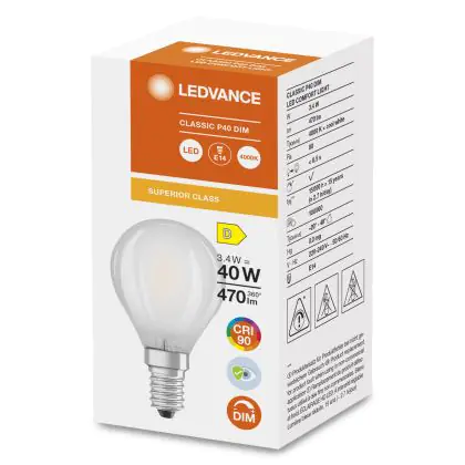 Ledvance Superior Classic LED E14 Ball Frosted 3.4W 470lm - 940 Cool White | Dimmable - Best Colour Rendering
