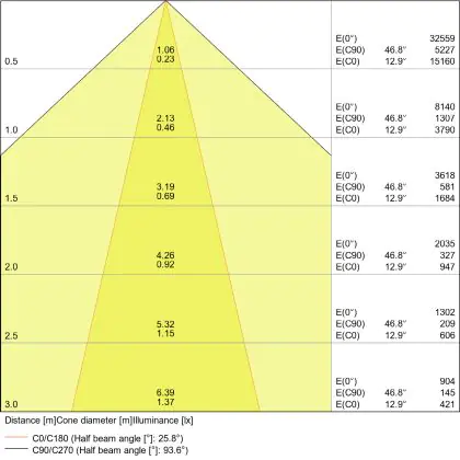 A beam angle indicates the angle of the light beam coming from a light source. The smaller the radiation angle in degrees (D), the narrower the beam angle.