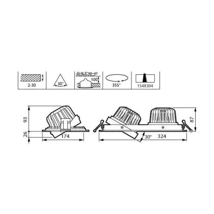Philips LED Spot Greenspace Accent Gridlight Aluminium White 45W 3000lm 36D - 830 Warm White | 154mm - IP20