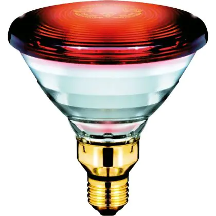 The Philips PAR38 Healthcare IR 150W E27 230V Red is an infrared incandescent reflector lamp designed for the treatment of muscle pain, rheumatic ailments and sports injuries. These lamps generate localised and controllable heat through which a variety of bodily and medical impairments can be treated in the form of heat therapy. In addition, this form of lamp heat therapy has been proven to be beneficial in speeding up the healing time of wounds and injuries, improving blood circulation, encouraging the transport of beneficial compounds and providing effective pain relief.